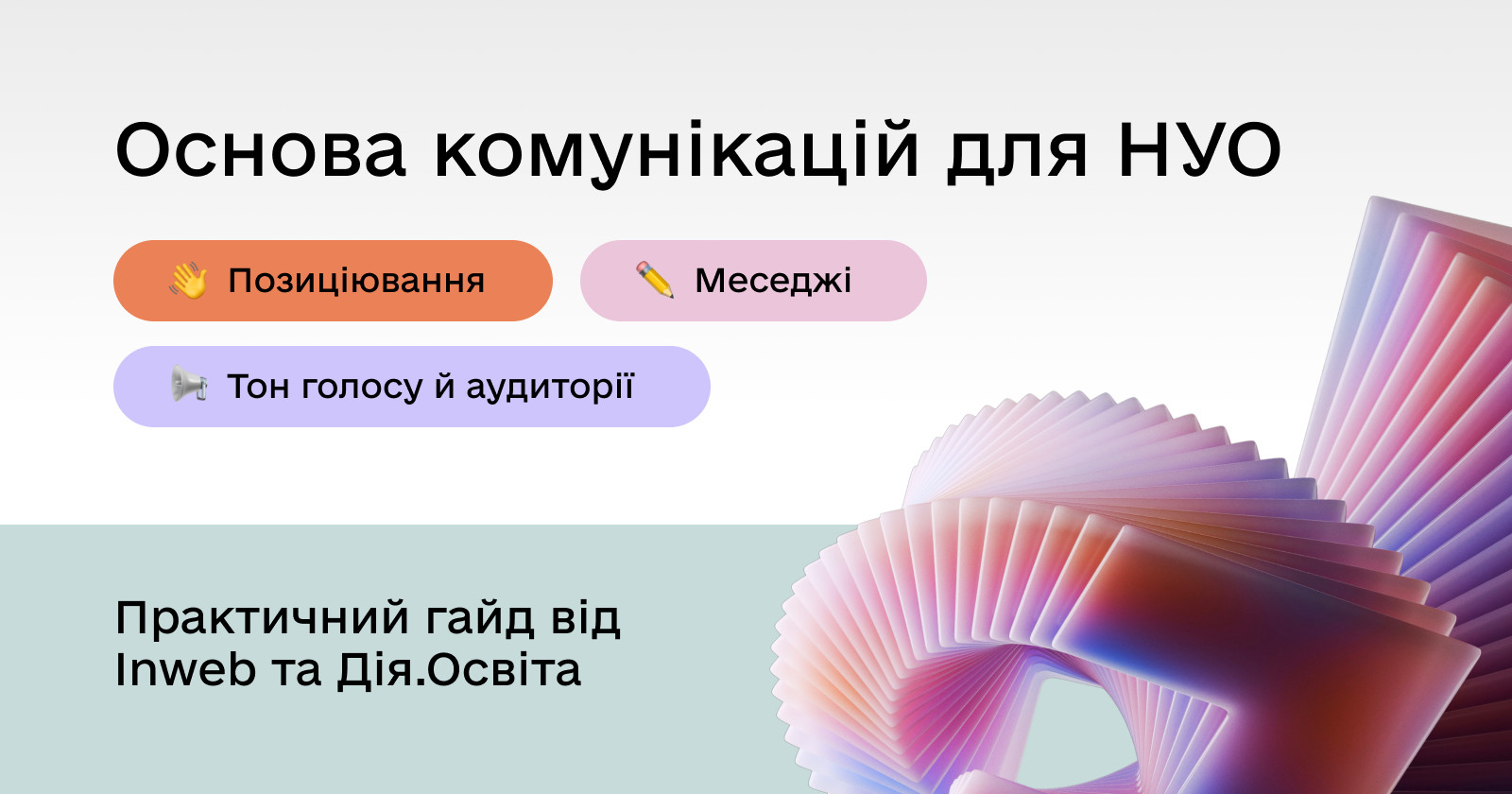 Агенція digital-маркетингу Inweb та платформа «Дія.Освіта» створили безкоштовний гайд для неприбуткових організацій «Основа комунікацій для НУО: позиціювання, меседжі, тон голосу й аудиторії». Про це повідомила комунікаційна команда Inweb.