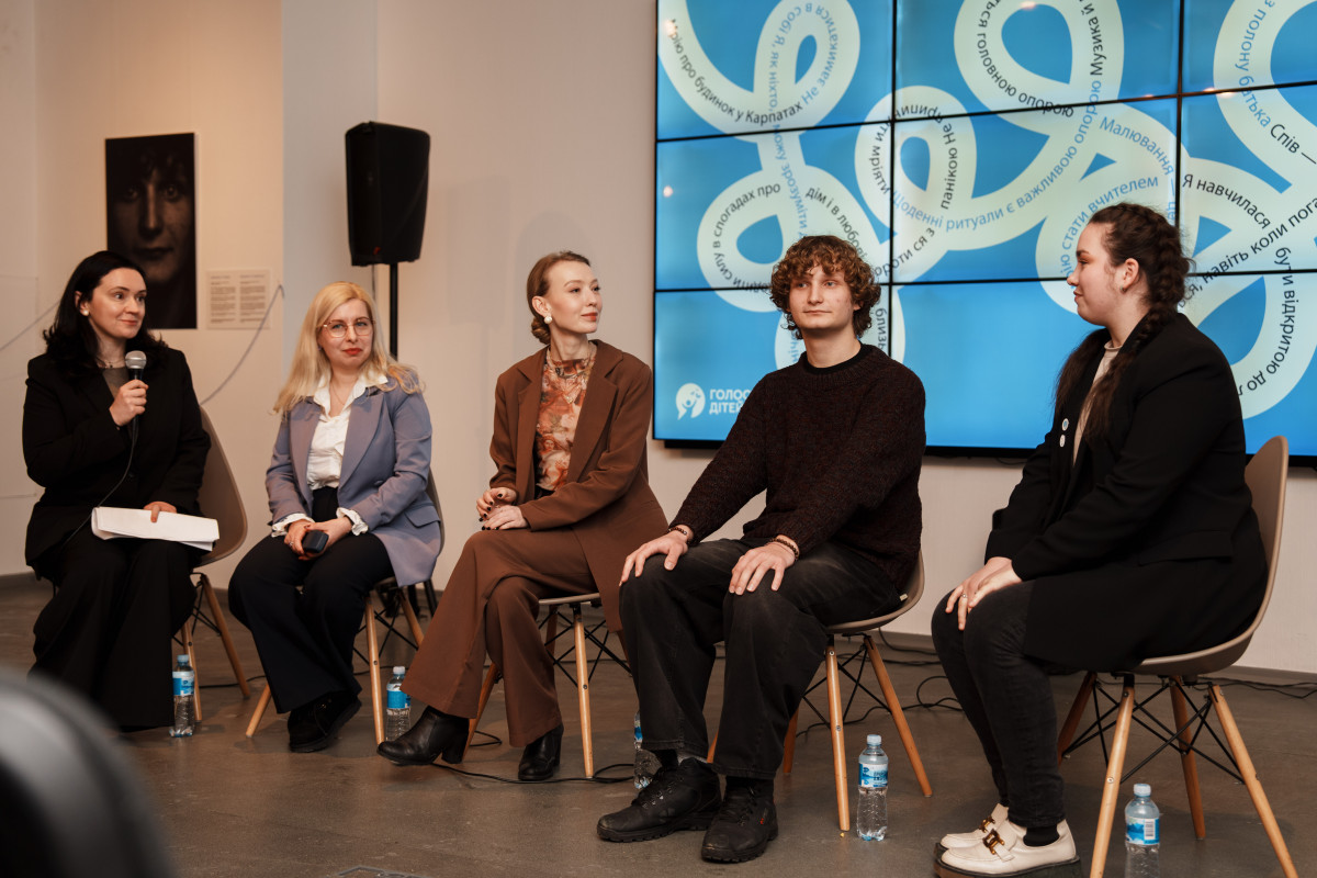 У межах презентації відбулася панельна дискусія «Трансформація замість зламаності» за участі дітей проєкту, юристки Регіонального центру прав людини Катерини Рашевської, психологині фонду Софії Стеценко та співзасновниці «Голосів дітей» Олени Розвадовської.